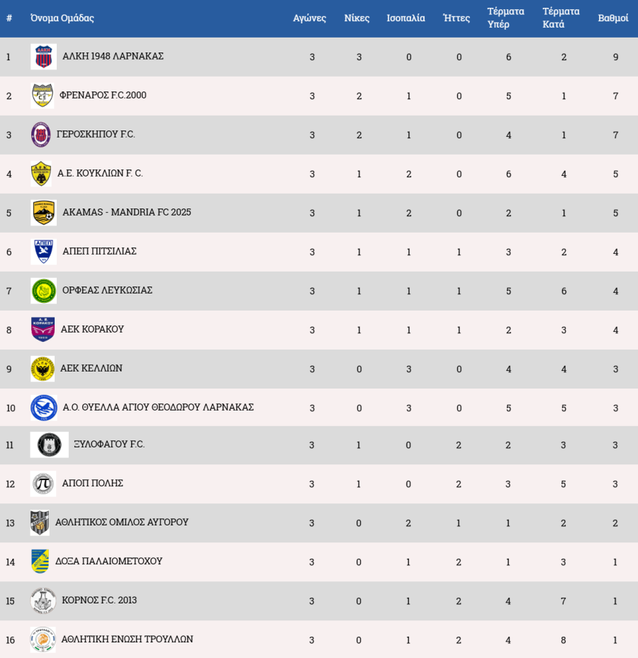 Κόρνος-ΑΕΚ Κουκλιών 2-4 (Αντωνίου 60', Χρονακόπουλος 81'/Χαραλάμπους 29', Ιωάννου 43', 45', 73')