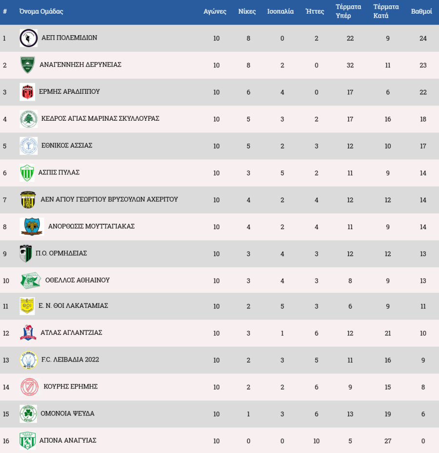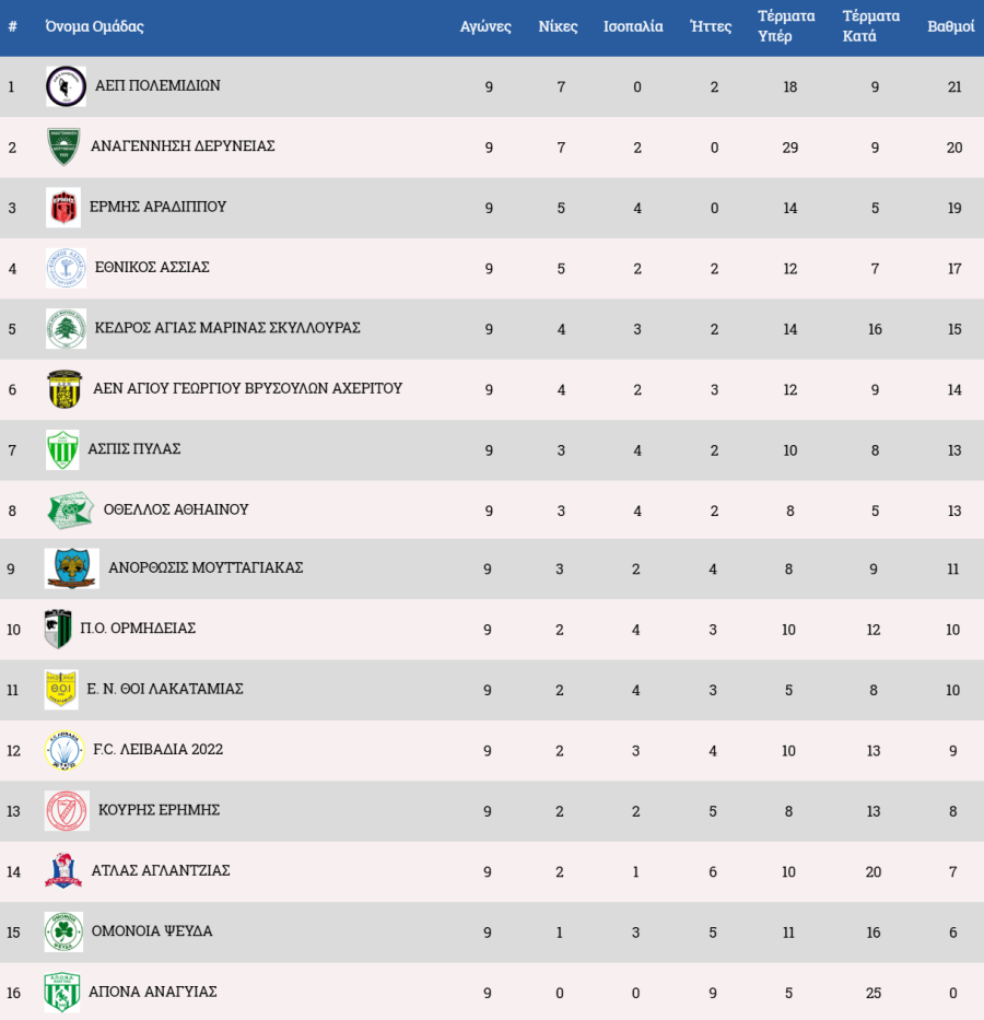 FC Λειβάδια – Αναγέννηση Δερύνειας 2-4 (Εμπαγιέ 61', Βασιλείου 75'/Άδάμου 4', Βουκτσίδης 5', 64', Ηλία 34')