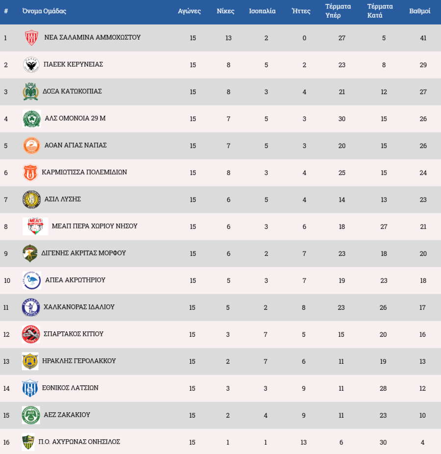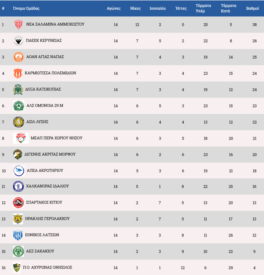 ΜΕΑΠ – Νέα Σαλαμίνα 1-4 (Κέρτις 42' /Καστάνας 15', Xριστοδούλου 33', Αρτίλες 45', Ανθίμου 88')