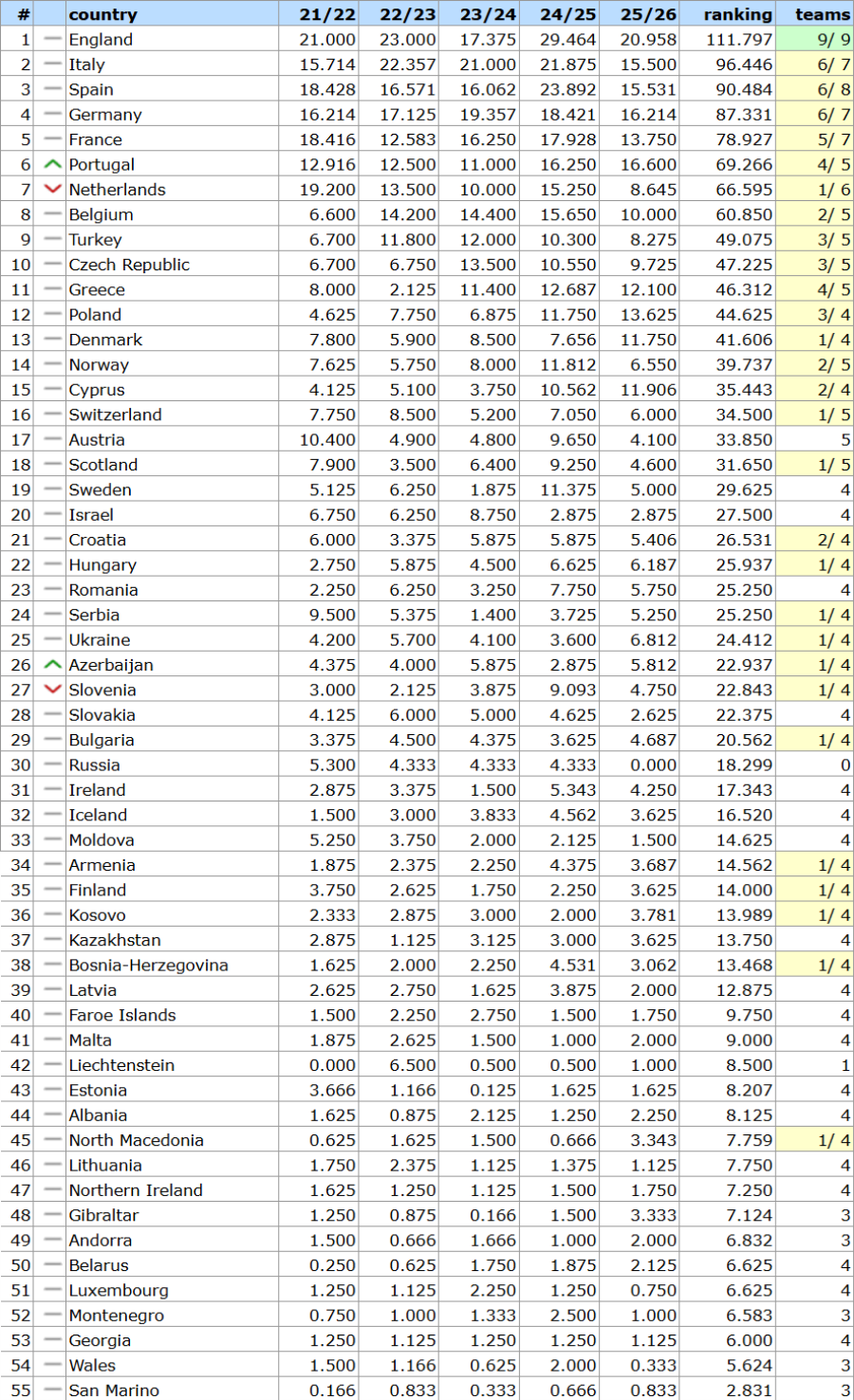 ✅ Τι δίνει κάθε θέση του UEFA Ranking, στη χώρα που την καταλαμβάνει. Δηλαδή, πόσες ομάδες θα βγάλει κάθε χώρα στο Champions League, στο Europa League, στο Conference League, και συνολικά στην Ευρώπη: