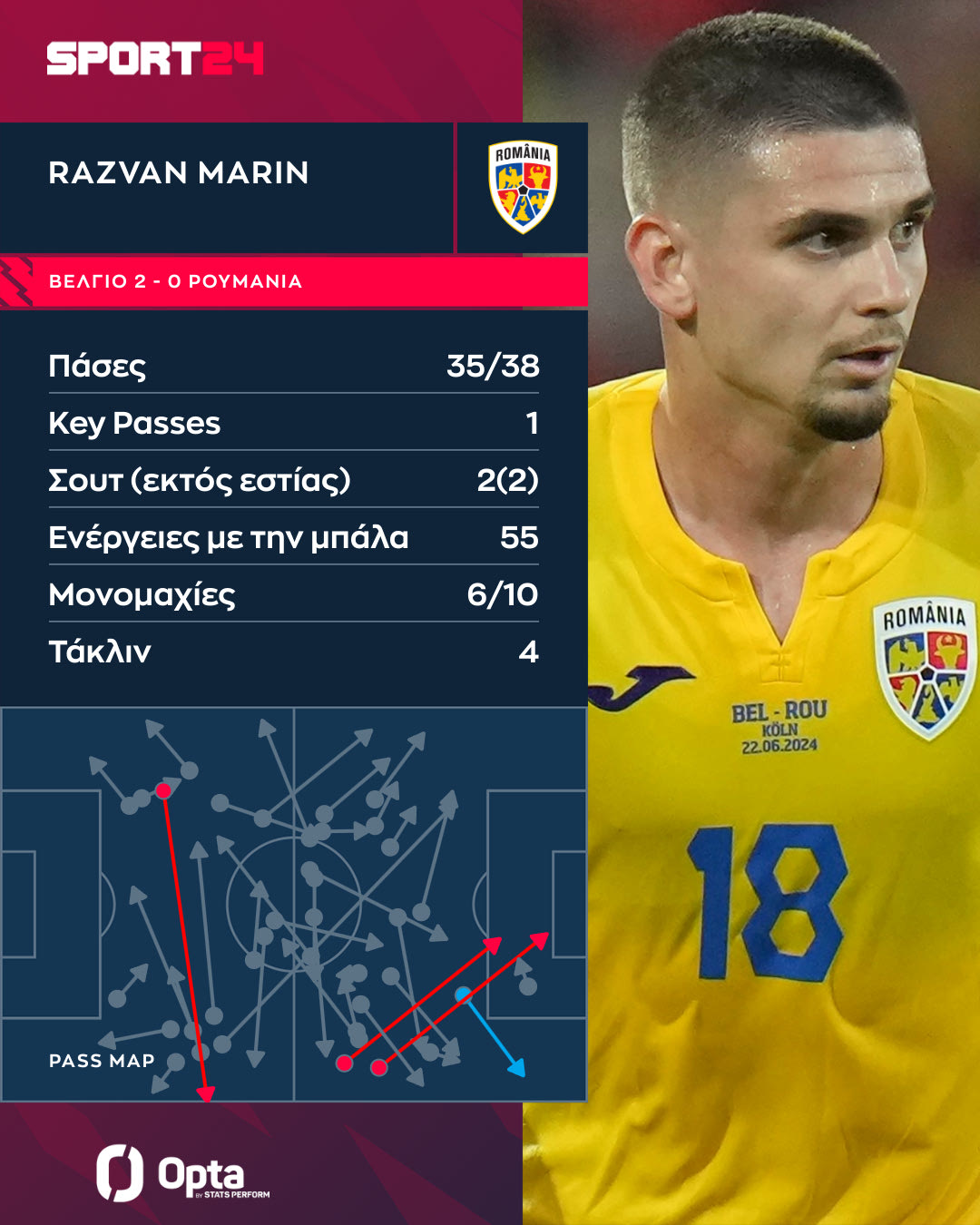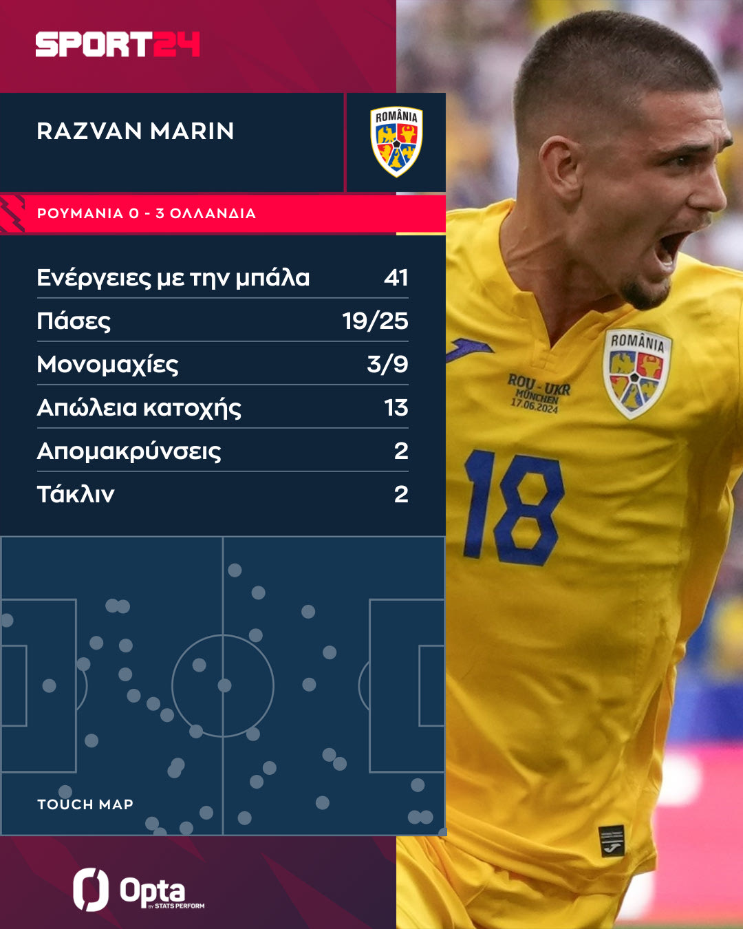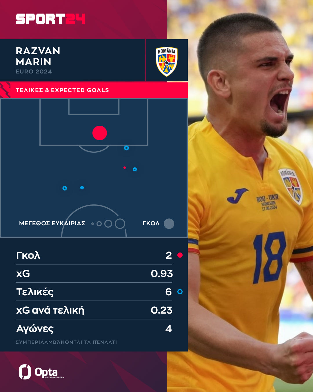 Πάμε, λοιπόν, να δούμε με τη βοήθεια της Opta/Stats Perform τι έκανε ακριβώς ο Ραζβάν Μάριν στο Euro 2024.