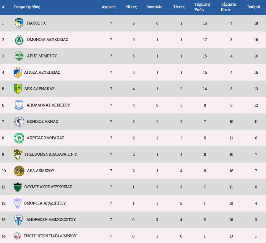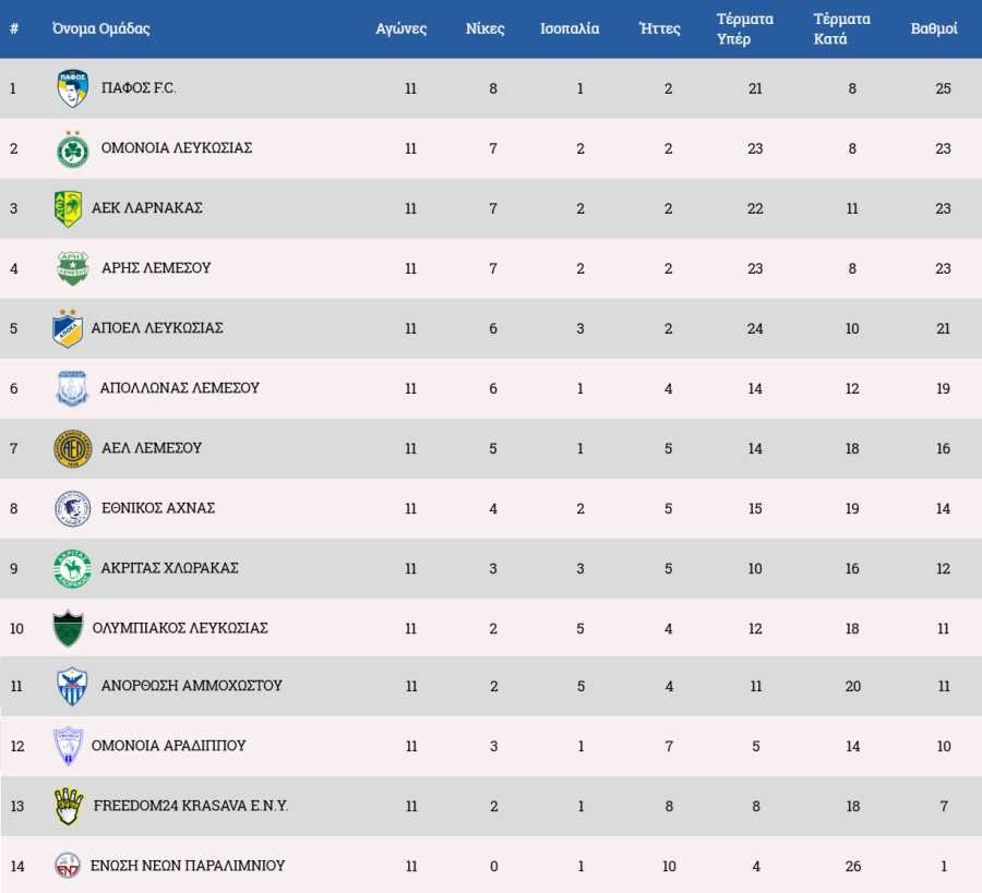 Πάφος–Εθνικός 4-0 (Νταβίντ Λουίζ 17', Κίνα 47', Ντράγκομιρ 85', Άντερσον 89')
