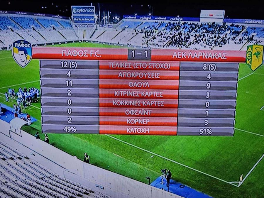 6η αγωνιστική(05/10):ΑΕΚ-Πάφος 2-4 (Ρούμπιο 2', Ιβάνοβιτς 87'/Κίνα 15', 42', Άντερσον 81', Ντράγκομιρ 88') ΑΕΚ: Αλομέροβιτς, Λέδες (Σουάρεζ 86'), Ρούμπιο (Ιζκιέρδο 78'), Μπάγιτς (Ιβάνοβιτς 66'), Μιλίσεβιτς, Πονς, Τσακόν, Μιραμόν (Ναούμ 86'), Εκπολό, Ρομπέρζ, Νάλι. Στον πάγκο: Παρασκευά, Δημητρίου, Ιωάννου, Σάμποριτ, Θωμά, Γερασίμου, Γκονζάλες. Πάφος: Γκόρτερ, Πηλέας (Λάνγκα 58'), Γκολντάρ, Μπρούνο, Κίνα (Άντερσον 65'), Ντιμάτα (Ντράγκομιρ 58'), Όρσιτς, Μίμοβιτς (Μπασουαμινά 65'), Λούκασεν, Σούνιτς, Πέπε(Νταβίντ Λουίζ 82'). Στον πάγκο- Μιχαήλ, Παπαδούδης, Ζάζα, Όντεφαλκ, , Μπρίτο. Κίτρινες: Λέδες 69'/Σούνιτς 44', Λουκάσεν 47', Γκολντάρ 62' Διαιτητής: Χριστοφόρου Μάριος Α' Βοηθός Διαιτητής: Καλογήρου Μάριος Β' Βοηθός Διαιτητής: Γεωργίου Χαράλαμπος 4ος Διαιτητής: Κωνσταντινίδης Αντώνης VAR: Giua Antonio AVAR: Τζιωρτζής Όμηρος Παρατηρητής: Καραισκάκης Μιχάλης *1 αλλαγή σε σχέση με Άλκμααρ: Μιραμόν αντί Ρόντεν. *5 αλλαγές σε σχέση με Μπάγερν: Γκόρτερ, Μπρούνο, Κίνα, Ντιμάτα, Μίμοβιτς αντί Μιχαήλ, Λουίζ, Ντράγκομιρ, Ζάζα, Άντερσον. *ΑΚΥΡΩΘΗΚΕ γκολ Πάφου, μέσω VAR. *ΜΕΤΡΗΣΕ γκολ Πάφου, μέσω VAR.