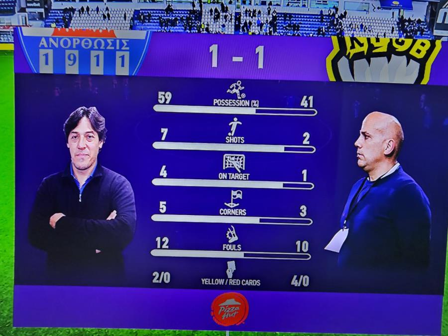 9η αγωνιστική (02/11):ΕΝΥ–Ανόρθωση 0-1 (Σένσι 78' πεν.) Freedom24 Krasava ΕΝΥ: Ζάντρο, Ντε Λούκας, Χριστοδούλου, Πανκόφ, Γιεμπλί, Ντο Κουτό(Σέζαρ 85'), Μπα(Τρούγιτς 85'), Ντε Ιριόντο, Μπαχάσα, Τσεμπάκ, Κυριάκου (Κουμουρής 85'). Στον πάγκο: Αβραμένκο, Μπούντνικ, Νταβιντιάν, Μελνιτσένκο, Βερνόν, Τρνταν, Τιάγκο, Οφσιάνικοφ. Ανόρθωση: Παναγή, Αρτυματάς, Κίκο, Σένσι, Βούκιτς (Χαραλάμπους 46'), Αμποάγκι, Σεργίου (Κις 79'), Μπέργκστρομ, Σόσα (Ντιόν 60'), Φουρτάδο (Καραμανώλης 82'), Μπεζούς (Χρυσοστόμου 60'). Στον πάγκο: Ρόγκιτς, Ραμίρεζ, Θεοδώρου, Παρούτης, Κάκτας, Σετίν, Χαραλάμπους, Ηλία. Κίτρινες: Μπαχάσα 32', Πάνκοφ 45', Nτε Λούκας 85', Τσεμπάκ 90'+/ Βούκιτς 37', Χρυσοστόμου 90' Κόκκινες: Πάνκοφ 63' (Δευτ.Κίτρινη), Ντε Ιριόντο 90'+ Διαιτητής: Φελλάς Κωνσταντίνος Α' Βοηθός Διαιτητής: Δημητριάδης Μάριος Β' Βοηθός Διαιτητής: Μεταξάς Μιχαήλ 4ος Διαιτητής: Αντωνίου Μάριος VAR: Χριστοδούλου Ιωάννης AVAR: Βασιλείου Αδάμος *Καμία αλλαγή σε σχέση με Άρη. *1 αλλαγή σε σχέση με ΑΕΛ. Κυριάκου αντί Λίπσκι. *ΠΕΝΑΛΤΙ υπέρ Ανόρθωσης μέσω VAR.