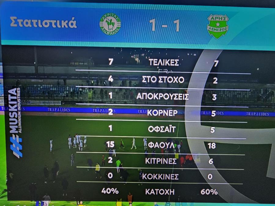 22η αγωνιστική (14/02):Ακρίτας–Άρης 1-1 (Μίλερ 90'/Ζήνωνος 81' αυτ.) Ακρίτας: Περντρέου, Μίλλερ, Αντωνίου (Χατζηβασίλης 85'), Ρομό, Αθανασίου (Μανού 58'), Φερνάντες, Άντονι, Κάστρο (Λιμπόμπε 73'), Ζήνωνος, Βασιλείου (Ιωάννου 85'), Καρλίτος (Τάφερτσχοφερ 73'). Στον πάγκο: Θεοκλή, Μπέκερ, Ολαμπιράν, Ντουπόφ, Ανάνγκ. Άρης: Φοδέρινγχαμ, Λελέ(Σανέ 66'), Γκόλντσον, Κορέια, Γκομίς(Κακόριν 66') , Γιαγκό, Νίκολιτς(Παζέ 66'), Κάστανος, Μοντνόρ (Σεμέδο 90'), Χαραλάμπους (Μπουράν 76'), Κακουλλής. Στον πάγκο: Bανά, Σωφρονίου, Μακόσλαντ, Θεοδοσίου, Ακάμπα, Εφαγκέ. Κίτρινες: Άντονι 35', Καρλίτος 71'/Κάστανος 22', Παζέ 70', Γιαγκό 71', Μοντνόρ 79', Κακόριν 87', Φοδέριγχαμ 90'+ Διαιτητής: Χατζηγεωργίου Παναγιώτης Α' Βοηθός: Αναστασίου Στέφανος Β' Βοηθός: Ποουτίδης Γεώργιος 4ος Διαιτητής: Νεοφύτου Κωνσταντίνος VAR: Χριστοδούλου Ιωάννης AVAR: Κωμοδρόμος Ηράκλης *3 αλλαγές σε σχέση με Ομόνοια Αρ.: Φερνάντες, Άντονι, Κάστρο αντί Μπάρι, Τάφερτσχοφερ, Ζάμπελιν. *3 αλλαγές σε σχέση με Ανόρθωση: Φοδέρινγχαμ, Χαραλάμπους, Κακουλλής αντί Βανά Άλβες, Μακόσλαντ, Μπουράν. *Ντεμπούτο για Λιάσο Λουκά. *ΑΚΥΡΩΘΗΚΕ γκολ Άρη μέσω VAR. *244 εισιτήρια στο ματς, 107 οι γηπεδούχοι, 137 οι φιλοξενούμενοι. *Nτεμπούτο Λιμπόμπε