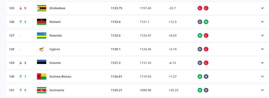 Η Κύπρος μετά την ήττα από Αυστρία και την ισοπαλία με Ρουμανία παρέμεινε στην 128η θέση κάτω από χώρες όπως Ρουάντα, Μαλάου και Ζιμπάμπουε.