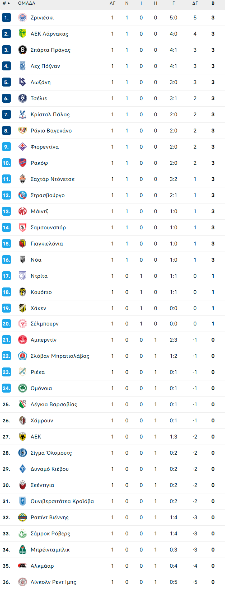 Δείτε τα στιγμιότυπα των αγώνων της 1ης αγωνιστικής της league phase του Conference League.