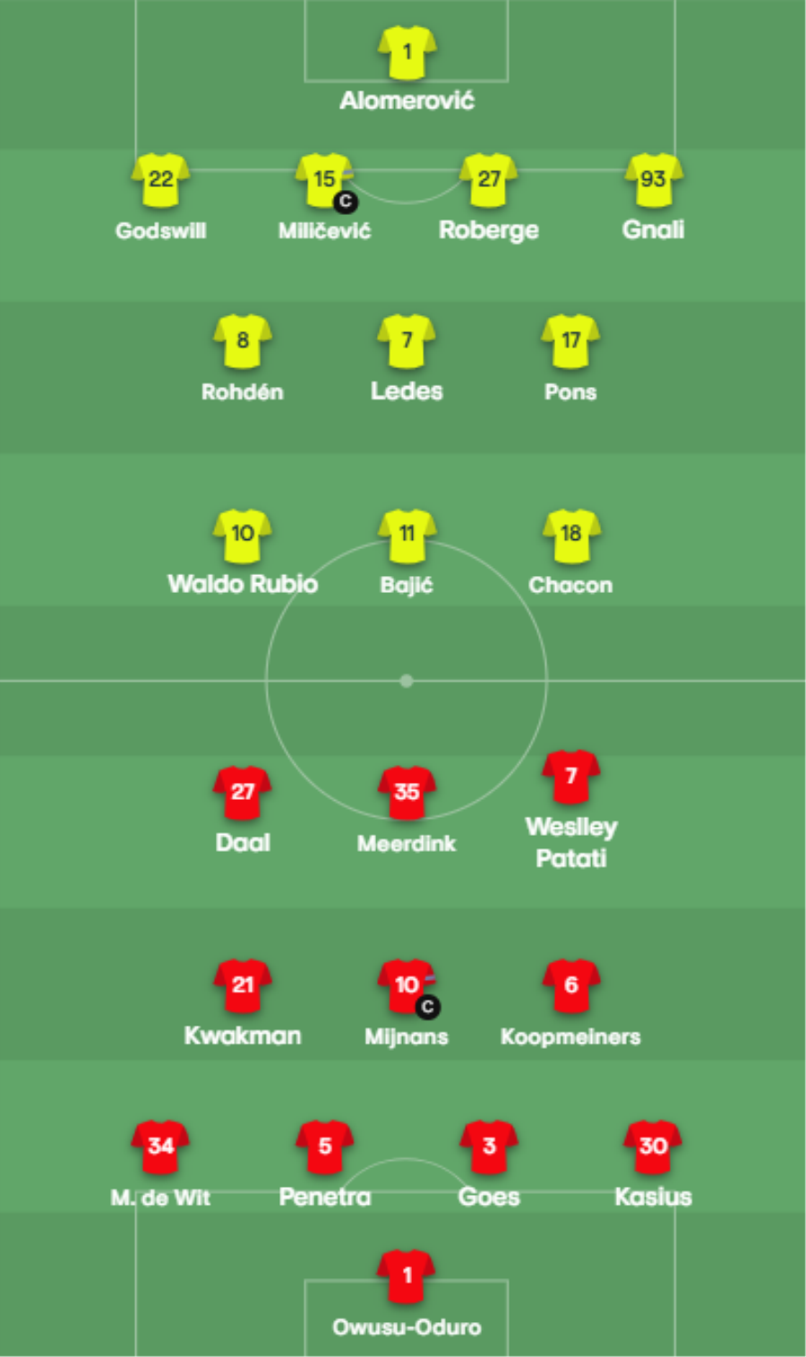 Στον πάγκο: Verhulst, Zoet, Dekker, Sadiq, Chávez, Jensen, Dijkstra, Zeefuik, Šín