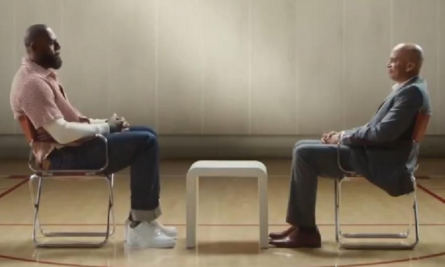 Ο Λεμπρόν Τζέιμς παίρνει τη θέση του, κάθεται με φόντο μια μπασκέτα και ετοιμάζεται ν’ ανακοινώσει την… μεγαλύτερη απόφαση όλων των αποφάσεων, όπως χαρακτηριστικά τόνισε!