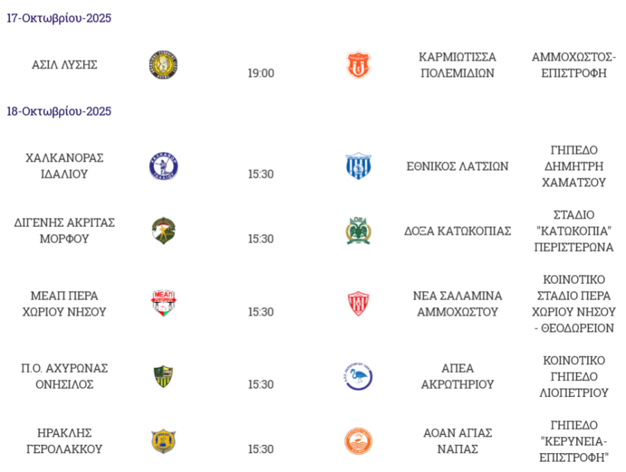 Το πρόγραμμα της επόμενης (5ης) αγωνιστικής: