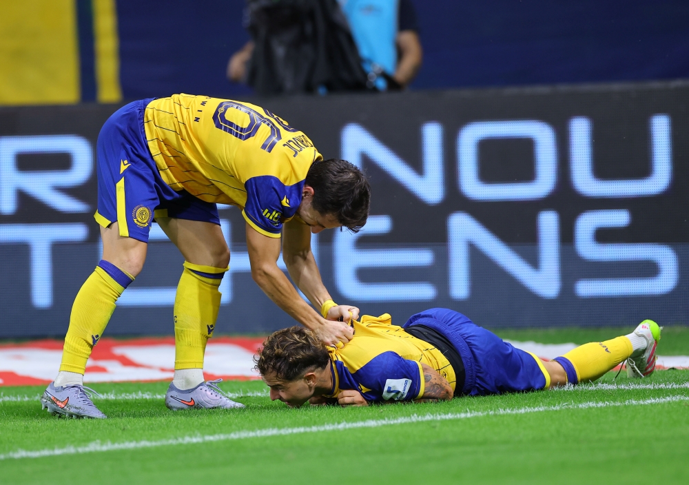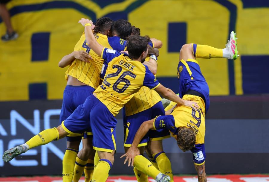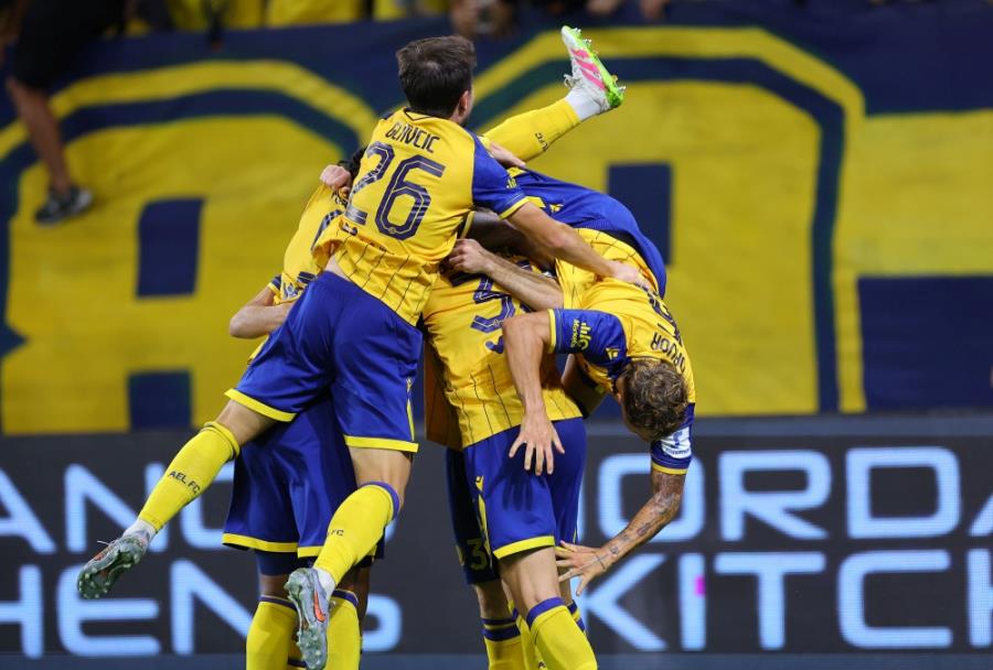 Ο άσος της ΑΕΛ έτρεξε να πανηγυρίσει με τους συμπαίκτες του όμως δεν υπολόγισε καλά και έπεσε εντυπωσιακά στο έδαφος, προκαλώντας τα γέλια των συμπαικτών του.
