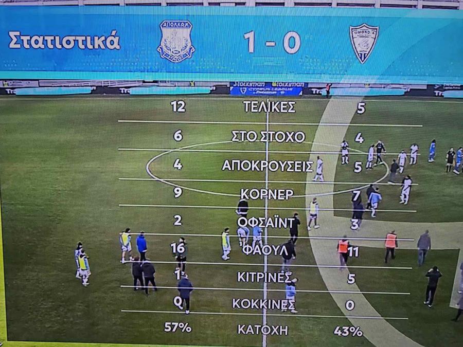 21η αγωνιστική (02/02/2025):Απόλλωνας–Ομόνοια Αρ. 1-0 (Ντε Μάρκο 23')