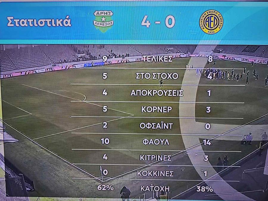 24η αγωνιστική (23/02):Άρης-ΑΕΛ 4-0 (Γκομίς 22', Μαγιαμπέλα 53', Κβιλιτάια 69' πεν., Γκάουσταντ 74') Άρης: Βανά, Μποάκι, Κβιλιτάια(Εφαγκέ 76'), Γκομίς(Σάβο 64'), Μάτισικ(Ουρόσεβιτς 46'), Γκόλντσον, Μαγιαμπέλα, Στρούσκι(Σαρφό 46') , Μοντνόρ(Γκάουσταντ 64'), Κορέια, Μακρίεφ. Στον πάγκο οι: Σωφρονίου, Ζάντρο, Μπένγκτσον, Μπράουν, Θεοχάρους. ΑΕΛ: Μπράγκα, Φραντζής, Ουεντραόγκο, Στόλνικ (Κέτσκες 71'), Φιλιώτης, Στρούμια(Γερολέμου 82'), Μάμας, Γκλάβτσιτς, Λεσοβόι (Τοκού 71'), Σινγκ, Ζε Τούρμπο(Τρισκόφσκι 82'). Στον πάγκο οι Κυριάκου, Μπέκερ, Κοσταντίνι, Τομάλα, Μακρής, Νεοφύτου, Χριστοδούλου, Ευσταθίου. Κίτρινες: Μάτισικ 3', Κορέια 21',Στρούσκι 45',Κβιλιτάια 58'/Μάμας 22', Ουεντραόγκο 68' Κόκκινη: Μάμας 43'(Δευτ.κίτρινη) Διαιτητής: Φελλάς Κωνσταντίνος Α' Βοηθός Διαιτητής: Κοντεμενιώτης Γιώργος Β' Βοηθός Διαιτητής: Λάμπρου Λάμπρος 4ος Διαιτητής: Λιοτατής Νικόλας VAR: Petrescu Radu Marian AVAR: Αντωνίου Μάριος *2 αλλαγές σε σχέση με Ανόρθωση: Κβιλιτάια, Μάτισικ αντί Κακόριν, Γιαγκό. *4 αλλαγές σε σχέση με ΑΠΟΕΛ: Φιλιώτης, Λεσοβόι, Γκλάβτσιτς, Ζε Τούρμπο αντί Γερολέμου, Νεοφύτου, Μακρή, Τοκού. *ΠΕΝΑΛΤΙ υπέρ Άρη, μέσω VAR. *Ντεμπούτο Εφαγκέ, αντί Κβιλιτάια στο 76'