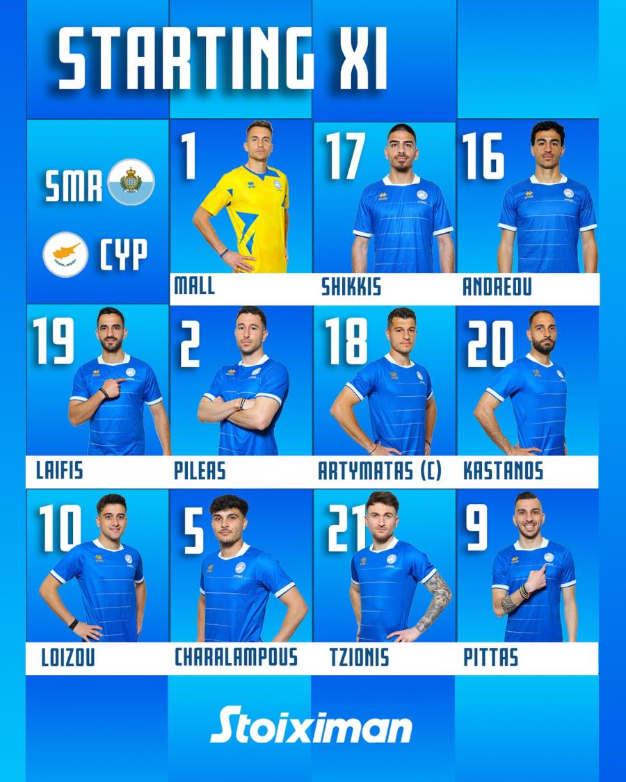 Κύπρος: Μολ, Σ. Ανδρέου, Χαραλάμπους, Πηλέας, Πίττας, Λοΐζου, Σιήκκης, Αρτυματάς, Λαΐφης, Κάστανος, Τζιωνής