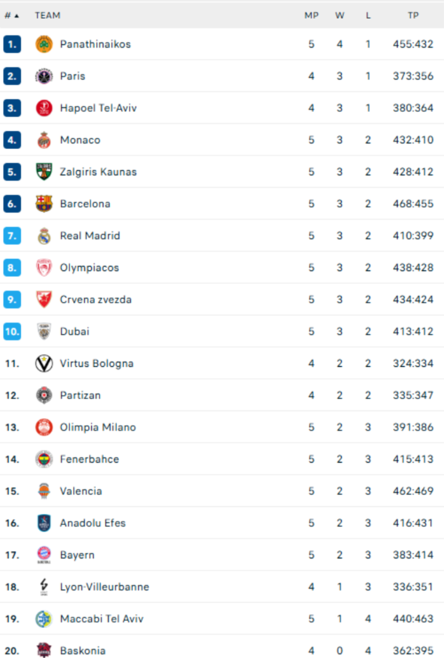 Οι «πράσινοι» ανέβηκαν πλέον στο 4-1, όπου θα ισοβαθμούν στο τέλος της αγωνιστικής με την ομάδα που θα επικρατήσει ανάμεσα σε Παρί και Χάποελ, που έχουν 3-1 ρεκόρ και παίζουν μεταξύ τους.