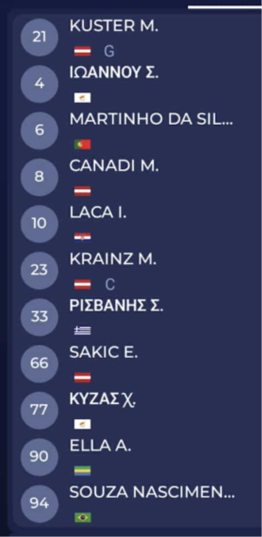 Στον πάγκο για την ΕΝΠ: Παναγιώτου, Χάμες, Μουσιελάνι, Κουρέζ, Άλβες, Κατσιάρης, Σολωμού, Αχμέντ, Καζάν, Σέσκο, Ντίρα, Σολωμού Δ.