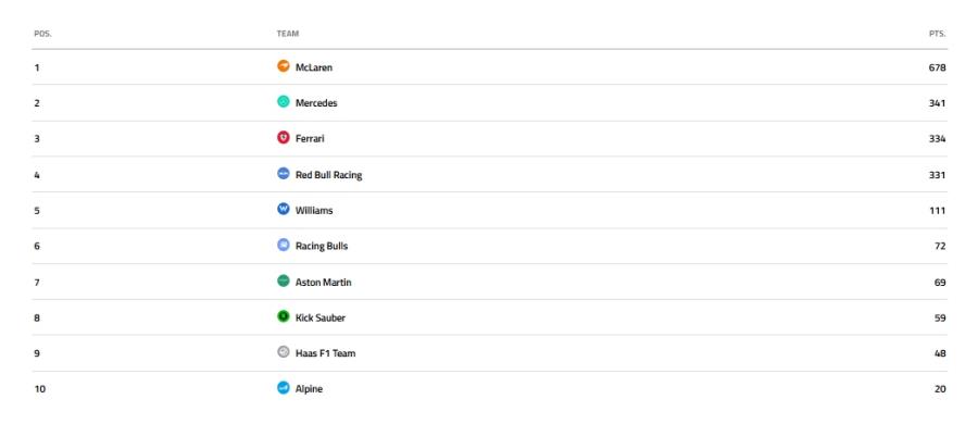 Όσον αφορά τη βαθμολογία των κατασκευαστών, η Ferrari χάρη στην 3η θέση του Σαρλ Λεκλέρ και την 4η του Λιούις Χάμιλτον, μείωσε τη διαφορά από τη δεύτερη Mercedes στους 7 βαθμούς (341 έναντι 334)!