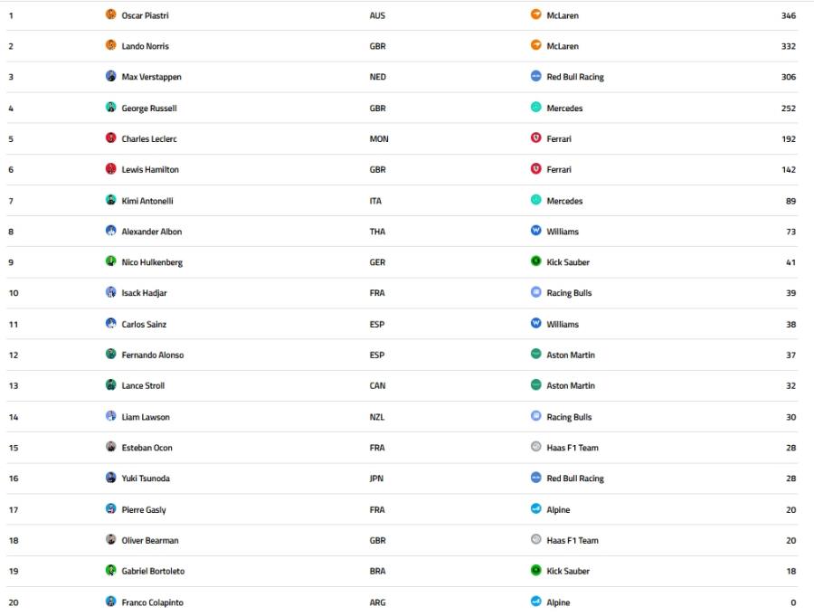 Συγκεκριμένα, ο «Super Max» μετά την αποψινή του νίκη έφτασε τους 306 βαθμούς και μείωσε στους 40β. τη διαφορά από τον πρωτοπόρο Όσκαρ Πιάστρι, αλλά και στους 26 από τον δεύτερο, Λάντο Νόρις!