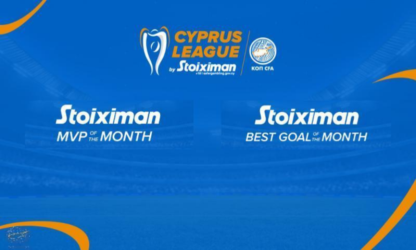 Η Κυπριακή Ομοσπονδία Ποδοσφαίρου σε συνεργασία με τον Stoiximan, συνεχίζουν την ανάδειξη του πολυτιμότερου ποδοσφαιριστή και του καλύτερου τέρματος κάθε μήνα στην Cyprus League by Stoiximan.