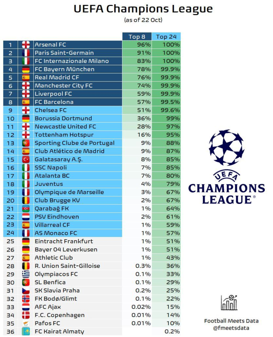 Όπως αναφέρεται στην ανάρτηση, η Πάφος έχει 0,01% πιθανότητες να τερματίσει στην πρώτη οκτάδα ενώ οι πιθανότητες της για είσοδο στην 24αδα είναι στο 10%.