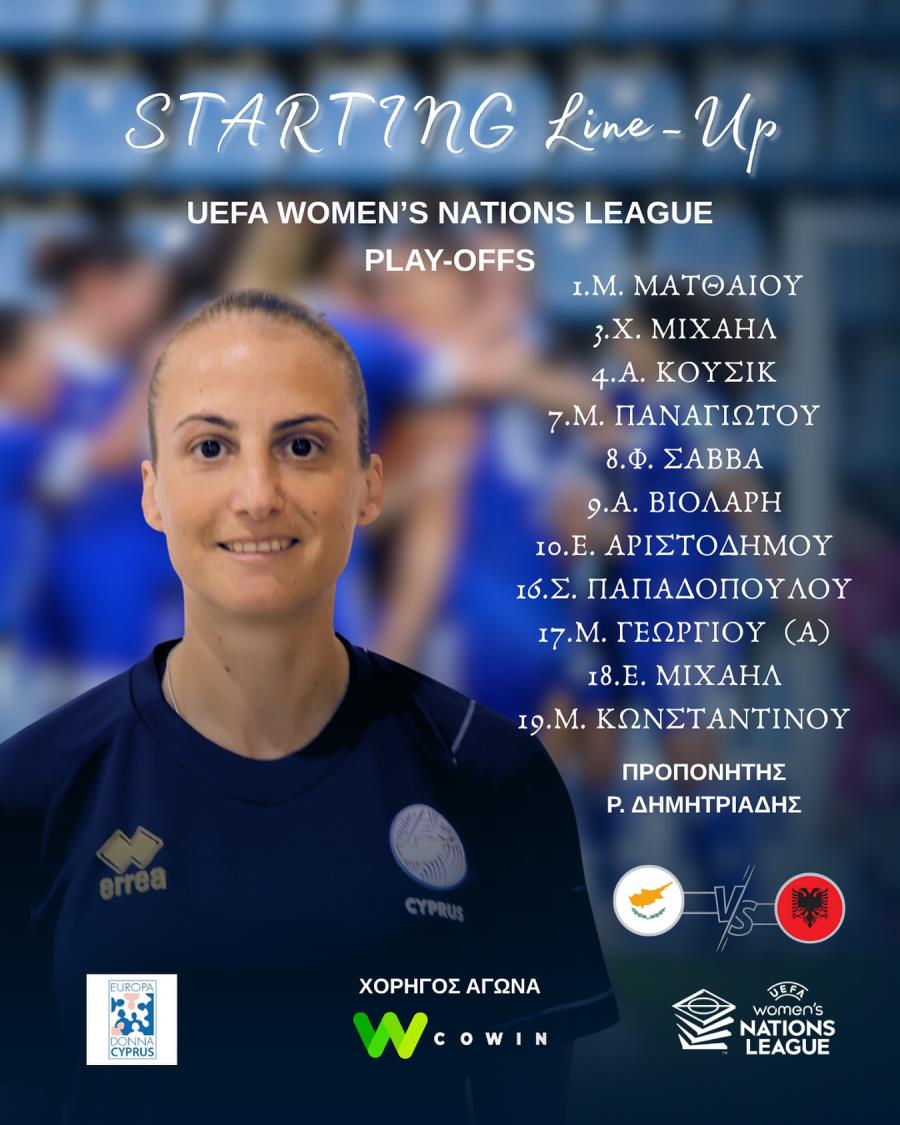 Κύπρος – Αλβανία θα αναμετρηθούν δύο φορές στα play-offs του UEFA Women's Nations League και ο νικητής θα εξασφαλίσει θέση στη Β’ Κατηγορία της επόμενης διοργάνωσης. Ο επαναληπτικός αγώνας θα γίνει στα Τίρανα στις 28 Οκτωβρίου.