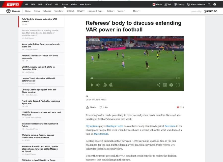 Ως γνωστόν, βάσει του ισχύοντος πρωτοκόλλου, ο VAR δεν μπορεί να παρέμβει σε περίπτωση αποβολής με δεύτερη κίτρινη κάρτα, ώστε να διορθώσει το όποιο λάθος του διαιτητή, κάτι που σε φάσεις όπως αυτή του Έσε στη Βαρκελώνη μπορεί να είναι καταδικαστική για μια ομάδα.