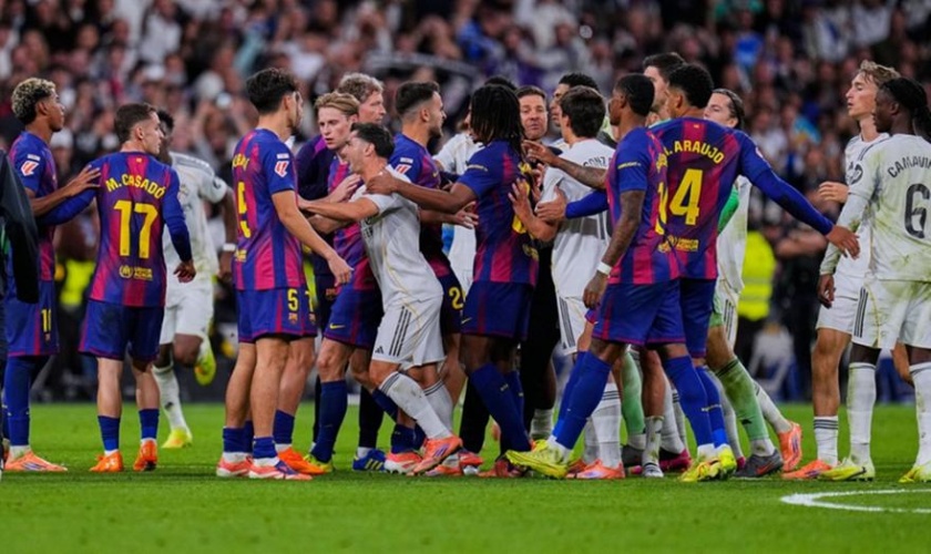 Η Ρεάλ αναδείχθηκε μεγάλη νικήτρια του σούπερ ντέρμπι στη Μαδρίτη, ωστόσο το φινάλε ήταν αρκετά έντονο, με παίκτες και staff των «μερένγκες» και της Μπαρτσελόνα να πιάνονται στα χέρια.