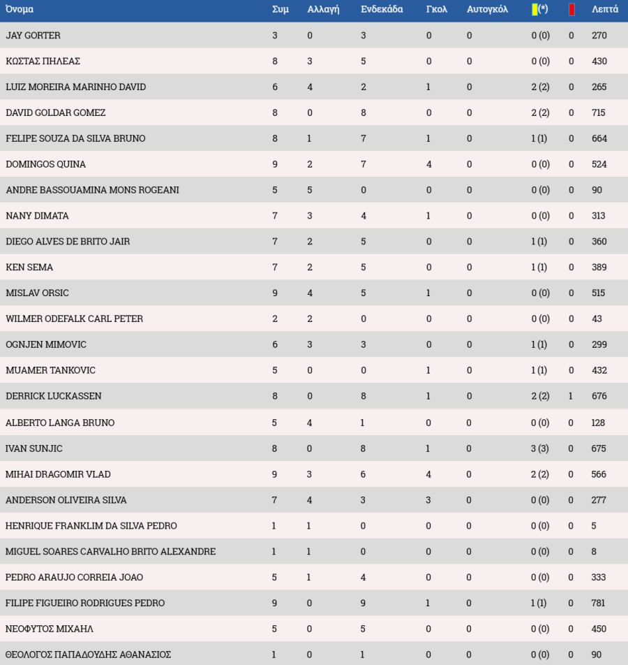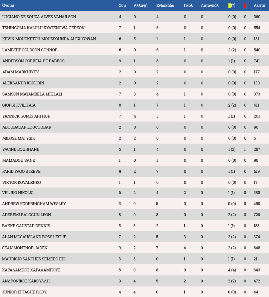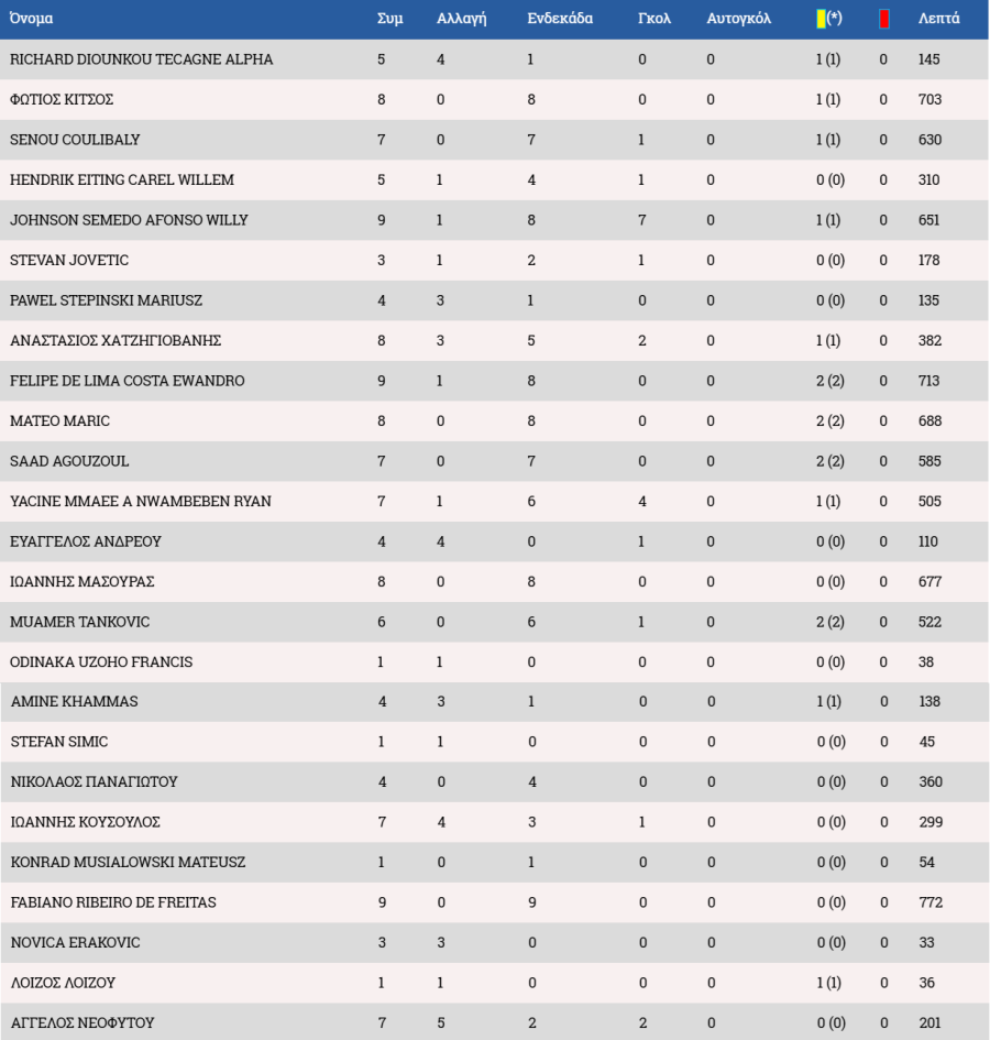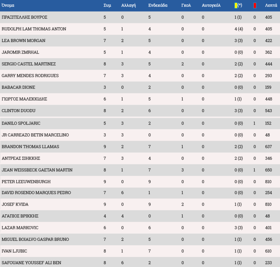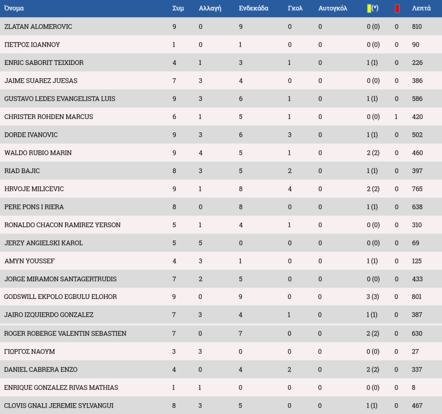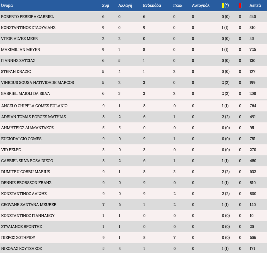 Τα στατιστικά των ποδοσφαιριστών: