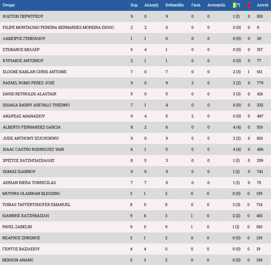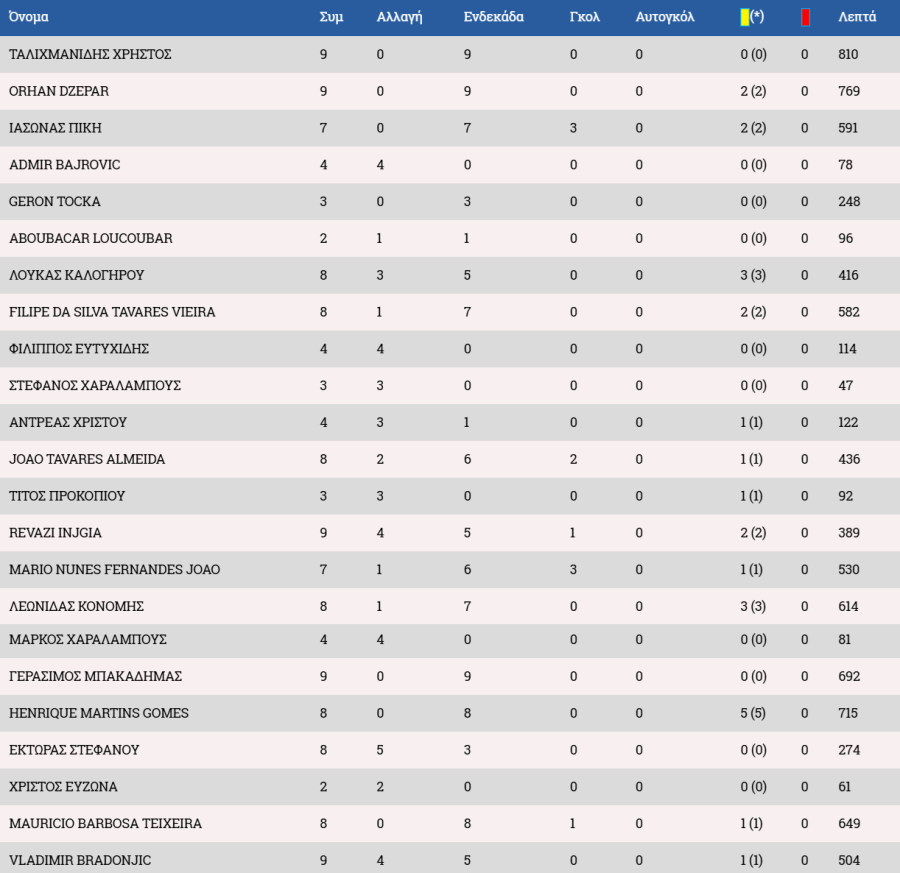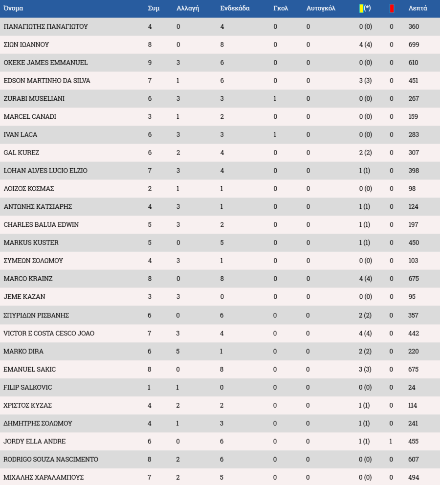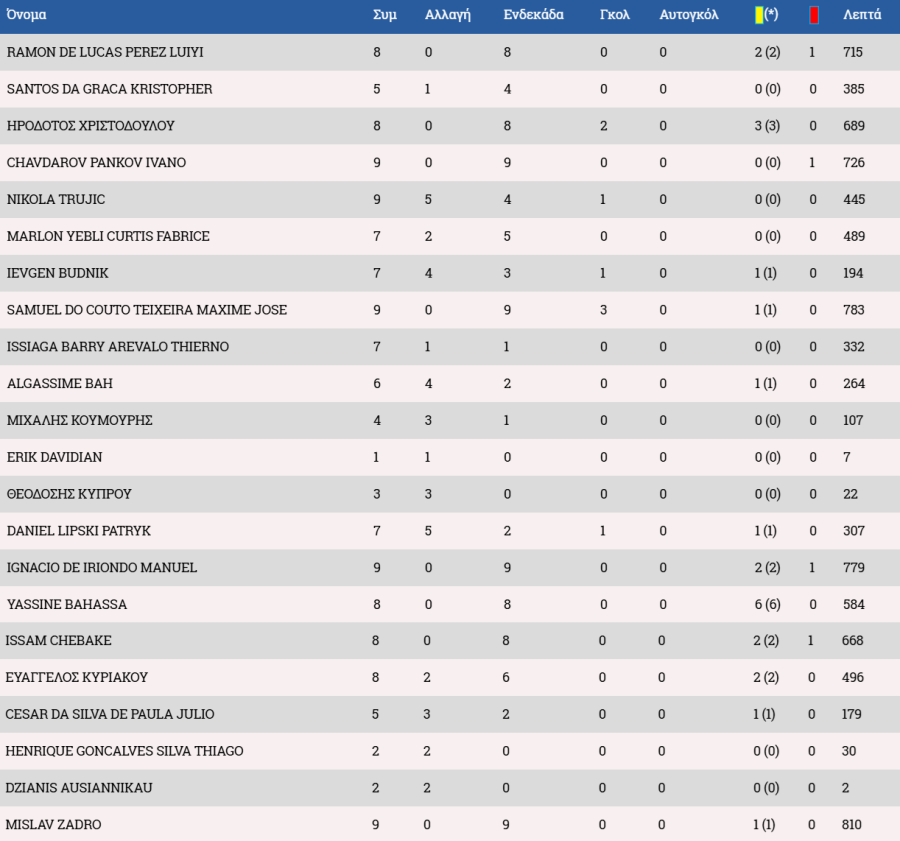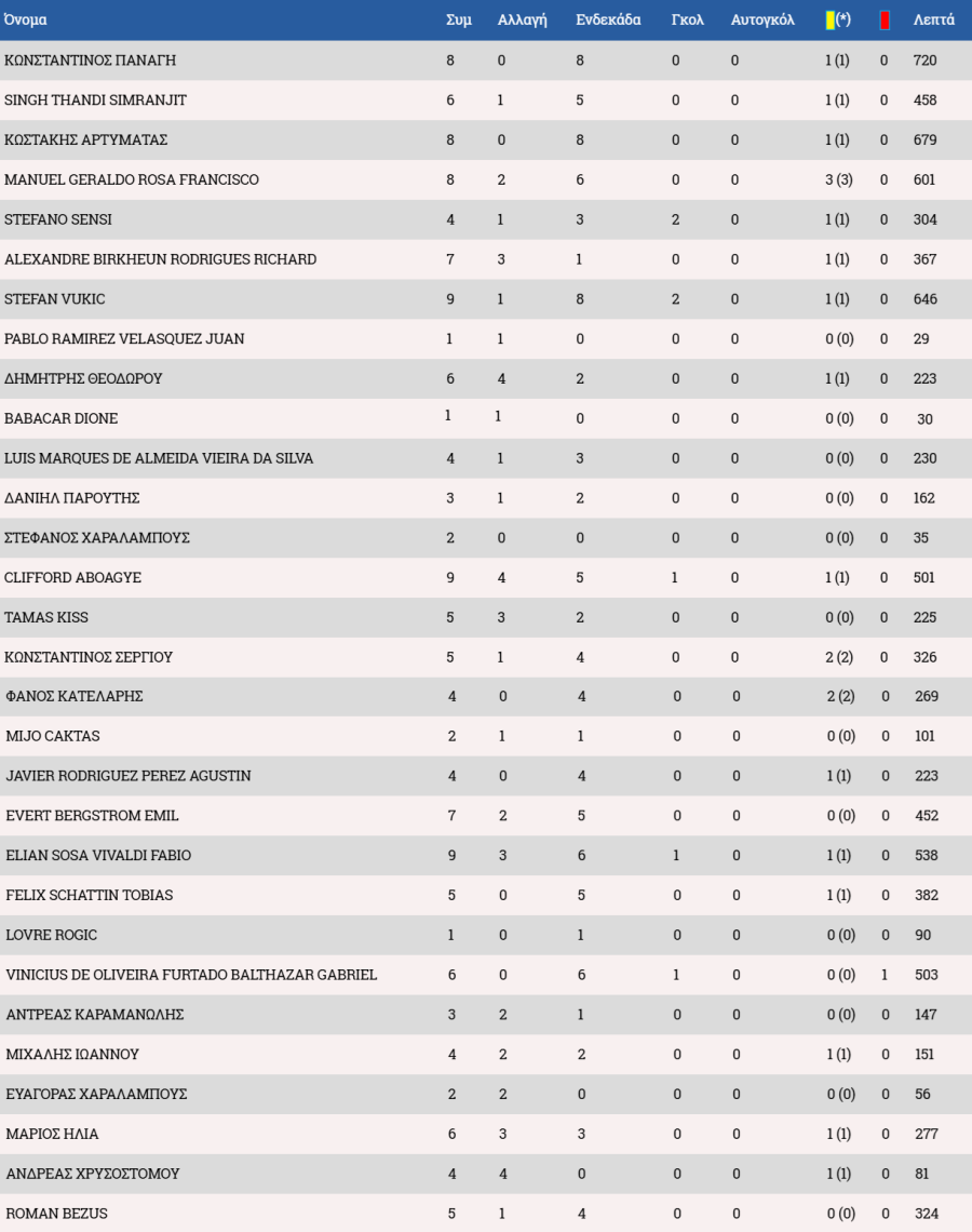 Τα στατιστικά των ποδοσφαιριστών: