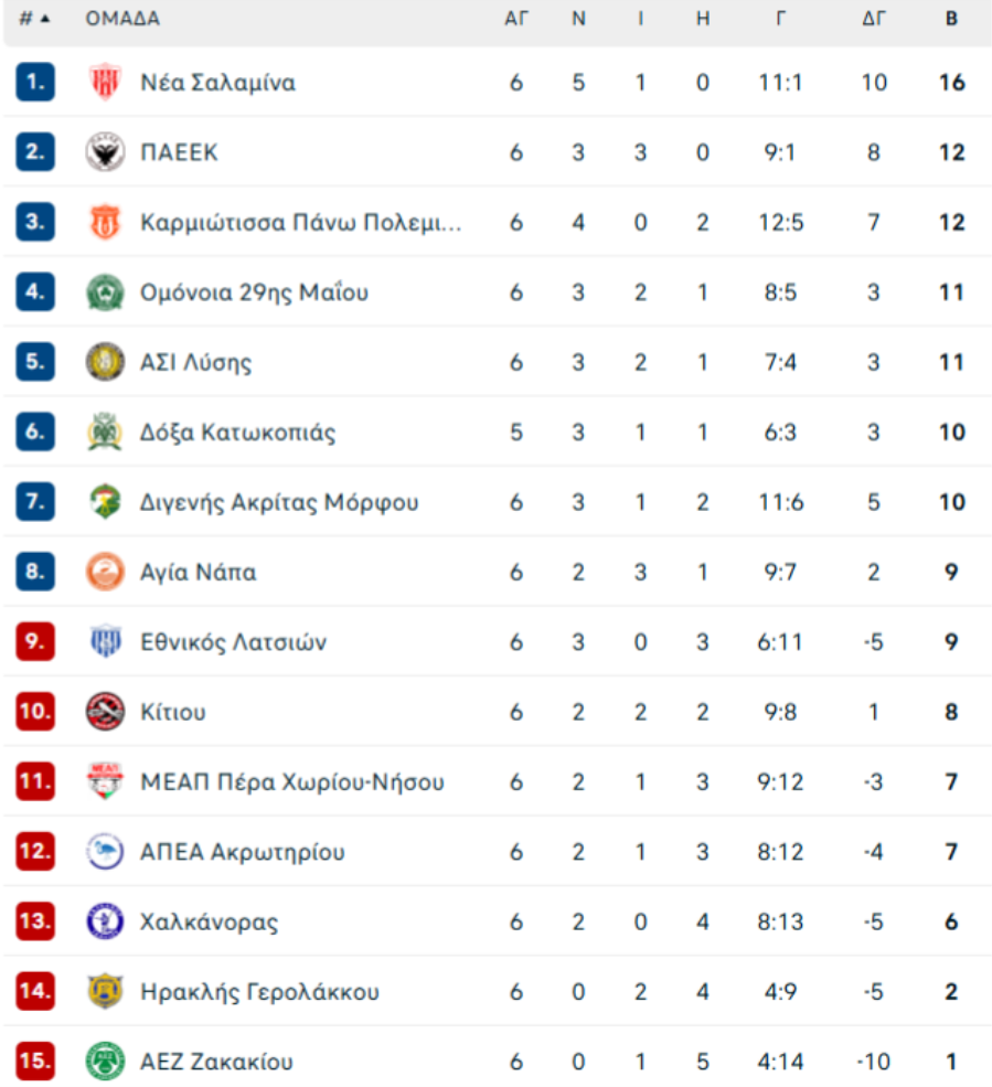 Η ΒΑΘΜΟΛΟΓΙΑ μετά από 6 αγωνιστικές
