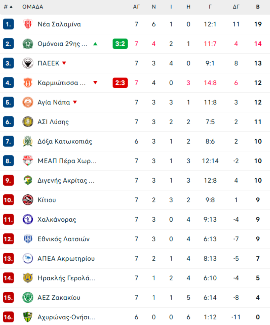 Με την αναμέτρηση Ομόνοια 29Μ-Καρμιώτισσα ολοκληρώθηκε η 7η αγωνιστική του πρωταθλήματος Β' κατηγορίας.