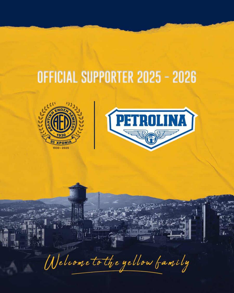 Η ΑΕΛ βρίσκεται στην ευχάριστη θέση να ανακοινώσει την σύναψη χορηγικής συνεργασίας με την ΠΕΤΡΟΛΙΝΑ ως OFFICIAL SUPPORTER για την αγωνιστική περίοδο 2025-2026.