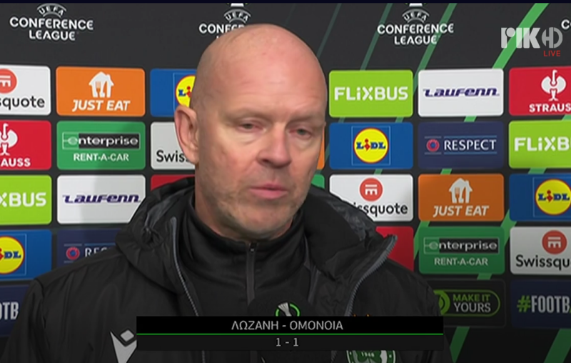 Δείτε τι δήλωσε στο ΡΙΚ ο προπονητής της Ομόνοιας, Χένινγκ Μπεργκ, μετά το τέλος της αποψινής αναμέτρησης στο Stade de la Tuiliere με αντίπαλο τη Λωζάνη, για την 3η αγωνιστική της League Phase του Conference League.