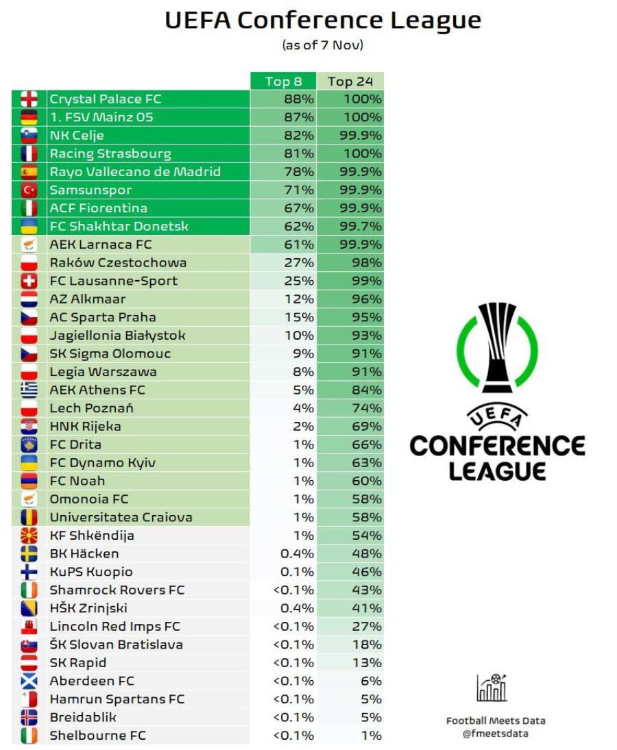 Η ΑΕΚ μετά το 0-0 κόντρα στην Αμπερντίν έχει 61% πιθανότητες να προκριθεί στην πρώτη οκτάδα και 99.9% για να προκριθεί στην επόμενη φάση.