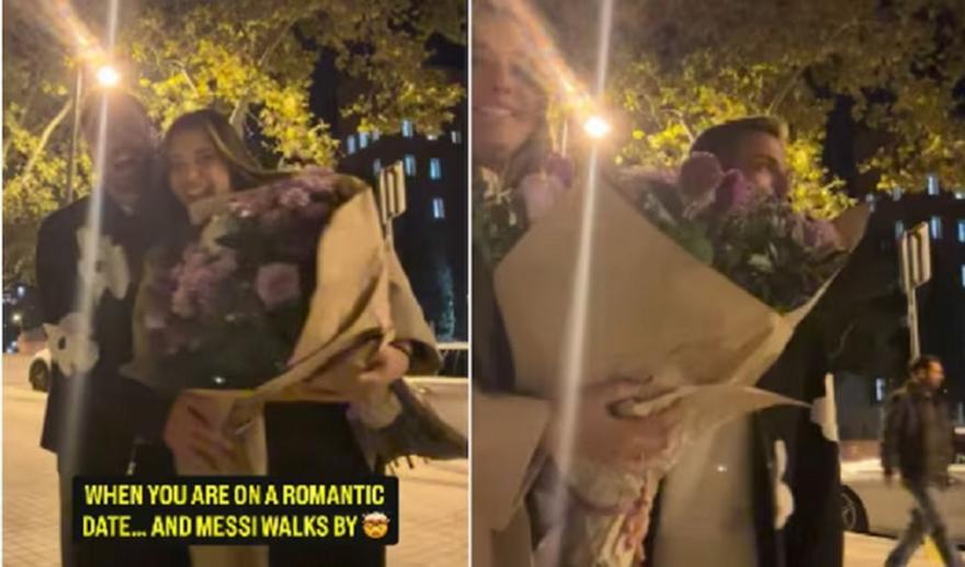 Ο Λιονέλ Μέσι, με τους άνδρες ασφαλείας του, πέρασε από πίσω τους, όπως φαίνεται ξεκάθαρα στο βίντεο που ανέβασαν στα social media. Το ζευγάρι «πάγωσε» και έμεινε να παρατηρεί τον Αργεντινό θρύλο να περνά.