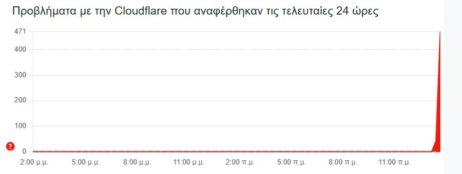 Οι αναφορές χρηστών στο downdetector δείχνουν προβλήματα στο Cloudflare, με τον σέρβερ να φαίνεται να αντιμετωπίζει λειτουργικά προβλήματα.