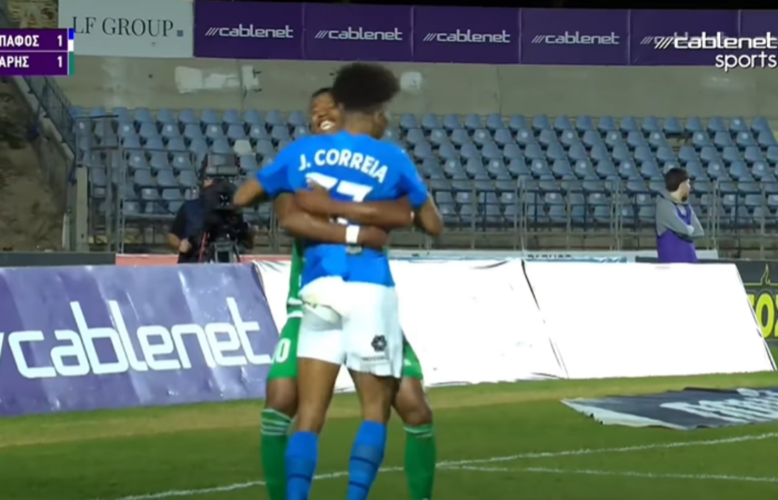 Η φάση που ξεχώρισε δεν ήταν κάποιο από τα γκολ αλλά η μεγάλη αγκαλιά των δύο αντιπάλων, Ζοάο Κορέια της Πάφου και Μιχλάλι Μαγιαμπέλα του Άρη!