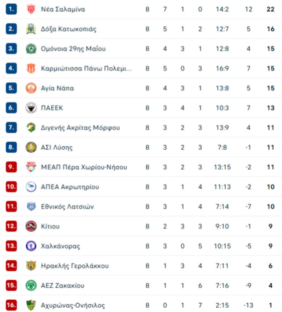 Η ΒΑΘΜΟΛΟΓΙΑ μετά από 8 αγωνιστικές: