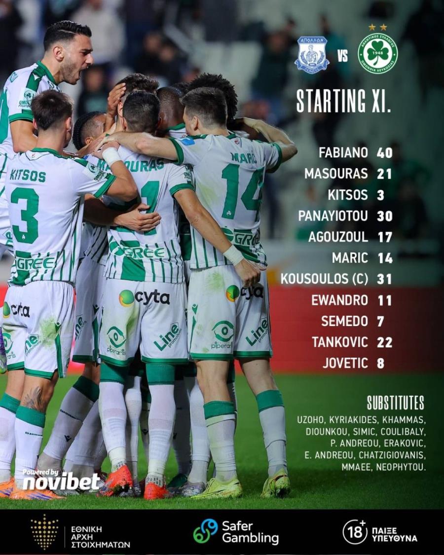 ΑΠΟΛΛΩΝΑΣ: Κουν, Βούρος, Ζμέρχαλ, Γκάρι Ροντρίγκες, Ντουοντού, Μπράντον Τόμας, Σιήκκης, Βέισμπεκ, Κβίντα, Μάρκοβιτς, Λιούμπιτς.