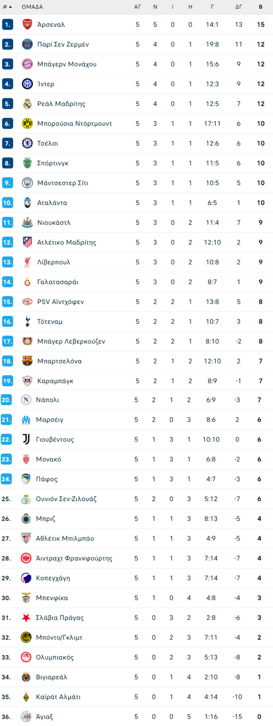 Και τη βαθμολογία μετά από πέντε αγωνιστικές: