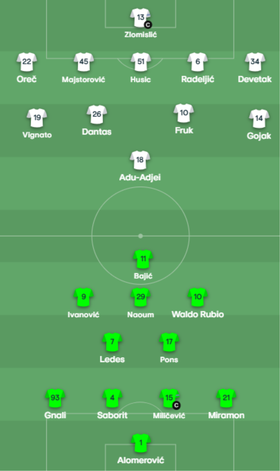 ΡΙΕΚΑ: Zlomislic, Orec, Majstorovic, Husic, Radeljic, Devetak, Vignato, Dantas, Fruk, Gojak, Adu-Adjei.