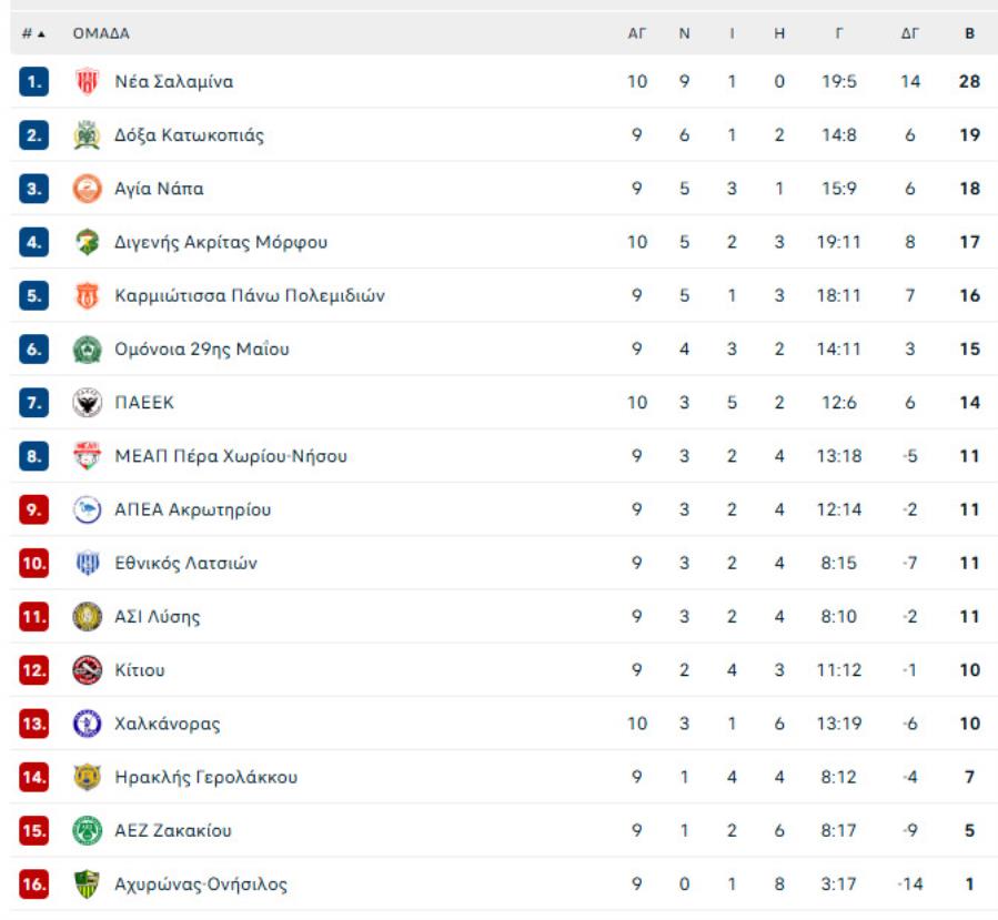 Νέα Σαλαμίνα: Λάρα, Αρτυματάς, Χριστοδούλου, Δημητρίου, Καστάνας, Μπαλντέ, Παυλίδης, Ηλία, Άνθιμου, Χαραλάμπους, Λουκά