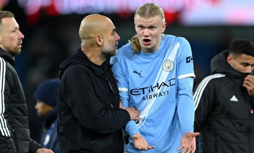 Οι κάμερες έπιασαν τον Νορβηγό φορ να μιλά με τον Πεπ Γκουαρντιόλα και να δείχνει με τη γλώσσα του σώματος πως ήταν έντονα δυσαρεστημένος με κάτι, ενώ ο προπονητής του προσπαθούσε να του μιλήσει και να τον ηρεμήσει.