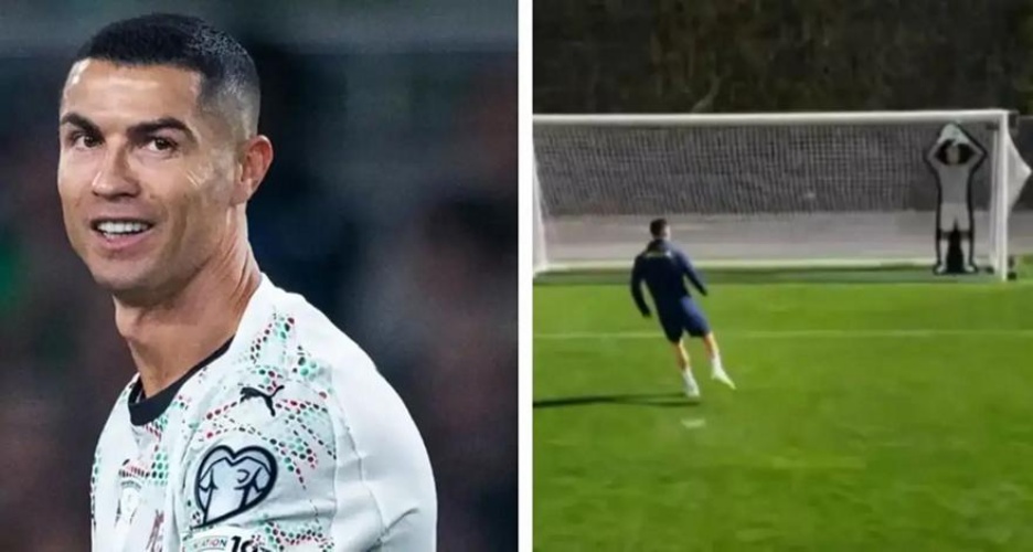 Ο Πορτογάλος σταρ αρχικά επιχείρησε να σκοράρει με το αριστερό, με το ρομπότ να αποκρούει εύκολα τις προσπάθειές του. Ο 40χρονος επιθετικός όμως δεν το έβαλε κάτω.
