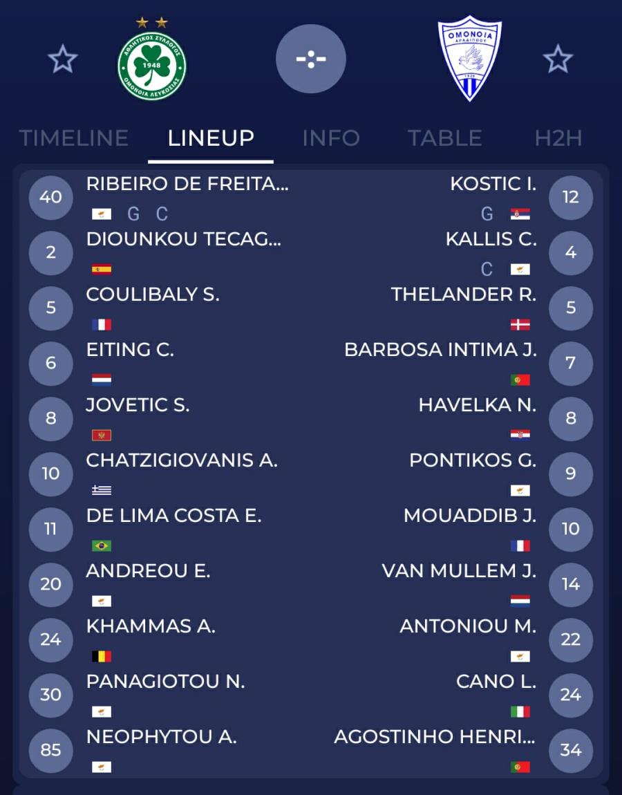 ΟΜΟΝΟΙΑ: Φαμπιάνο, Ντιουνκού, Κουλιμπαλί, Παναγιώτου, Χαμάς, Άιτινγκ, Έβαντρο, Χατζηγιοβάνης, Α. Ανδρέου, Γιόβετιτς, Νεοφύτου.