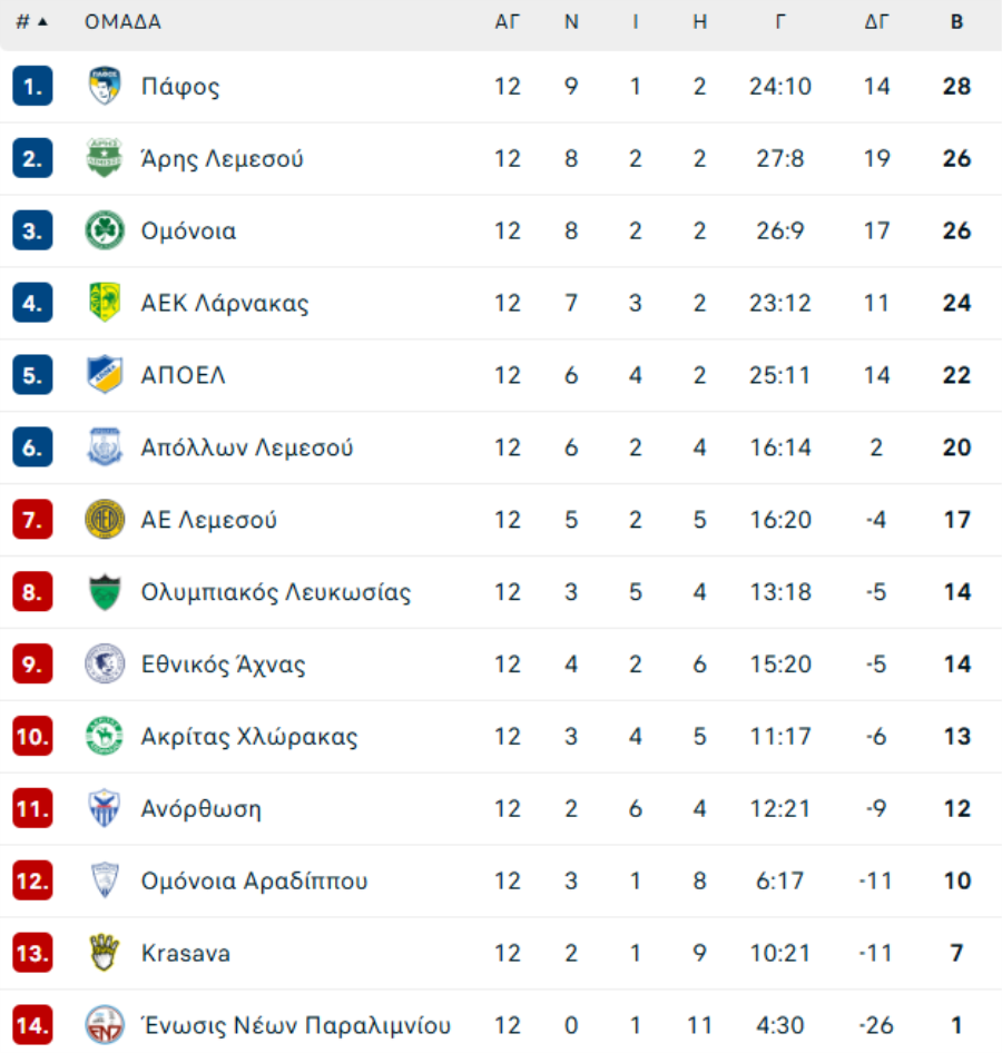 ΤΡΙΑΡΑ η... πράσινη Ομόνοια, συμβιβασμός στην Πάφο - ΒΑΘΜΟΛΟΓΙΑ και συνέχεια...