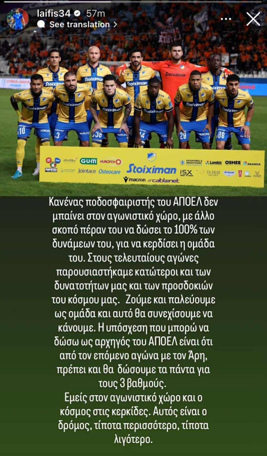 Ο Απόλλωνας ανάρτησε το πρώτο γκολ που πέτυχε με τον Γκαϊτάν Βεϊσμπέκ.