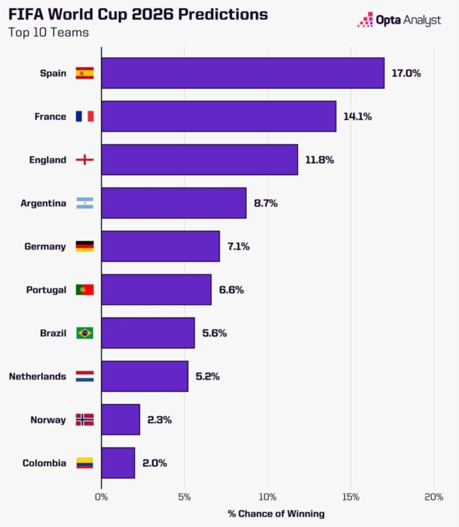 Τα κορυφαία φαβορί σύμφωνα με την Opta
