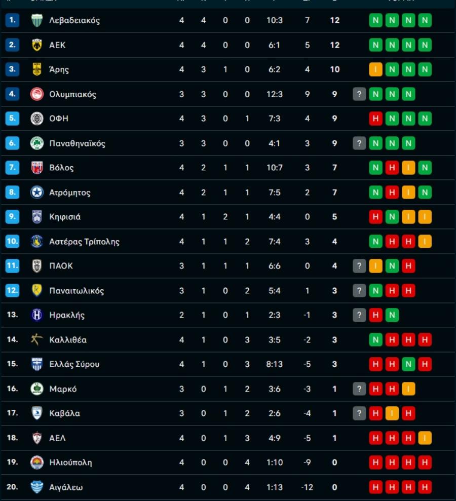 Βαθμολογία Κυπέλλου Ελλάδος: Κλείδωσαν τετράδα Λεβαδειακός και ΑΕΚ, στο χέρι των «αιωνίων» οι άλλες δύο θέσεις!