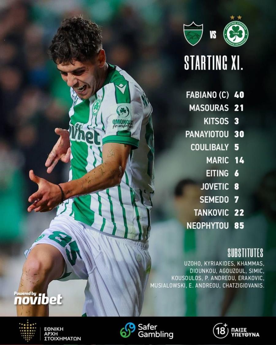 *5 αλλαγές σε σχέση με Ομόνοια Αραδίππου: Κίτσος, Μασούρας, Μάριτς, Τάνκοβιτς, Σεμεδο, αντί των Ντιούνκου, Χαμάς, Χατζηγιοβάνη, Εβάντρο, Άγγελου Ανδρέου.
